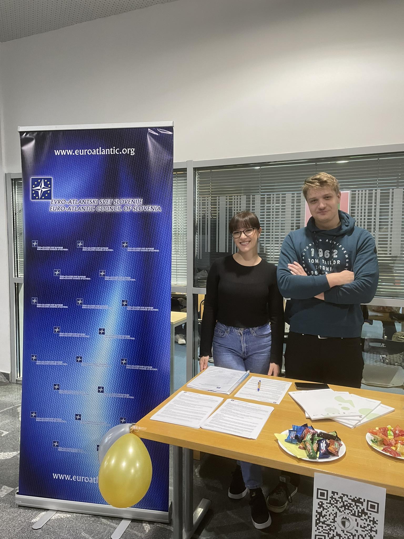 On Wednesday, October 18, 2023, the annual Associations Day was held at the Faculty of Social Sciences (FDV) in Ljubljana, where student associations of all study programs at FDV and beyond present their activities. This year, the Youth Section of the EACS joined the other associations at the stands, and for the first time presented the activities and mission of the Euro-Atlantic Council of Slovenia in this form. Several students showed interest in participating in EACS and thus joined the youth section.