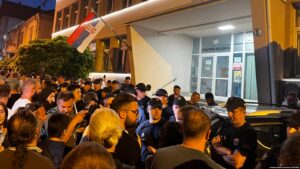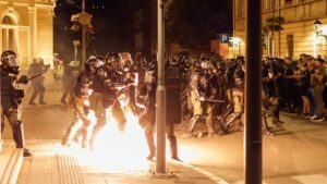 Violent protests erupted in Novi Sad and Valjevo, with demonstrators attacking ruling party officers.