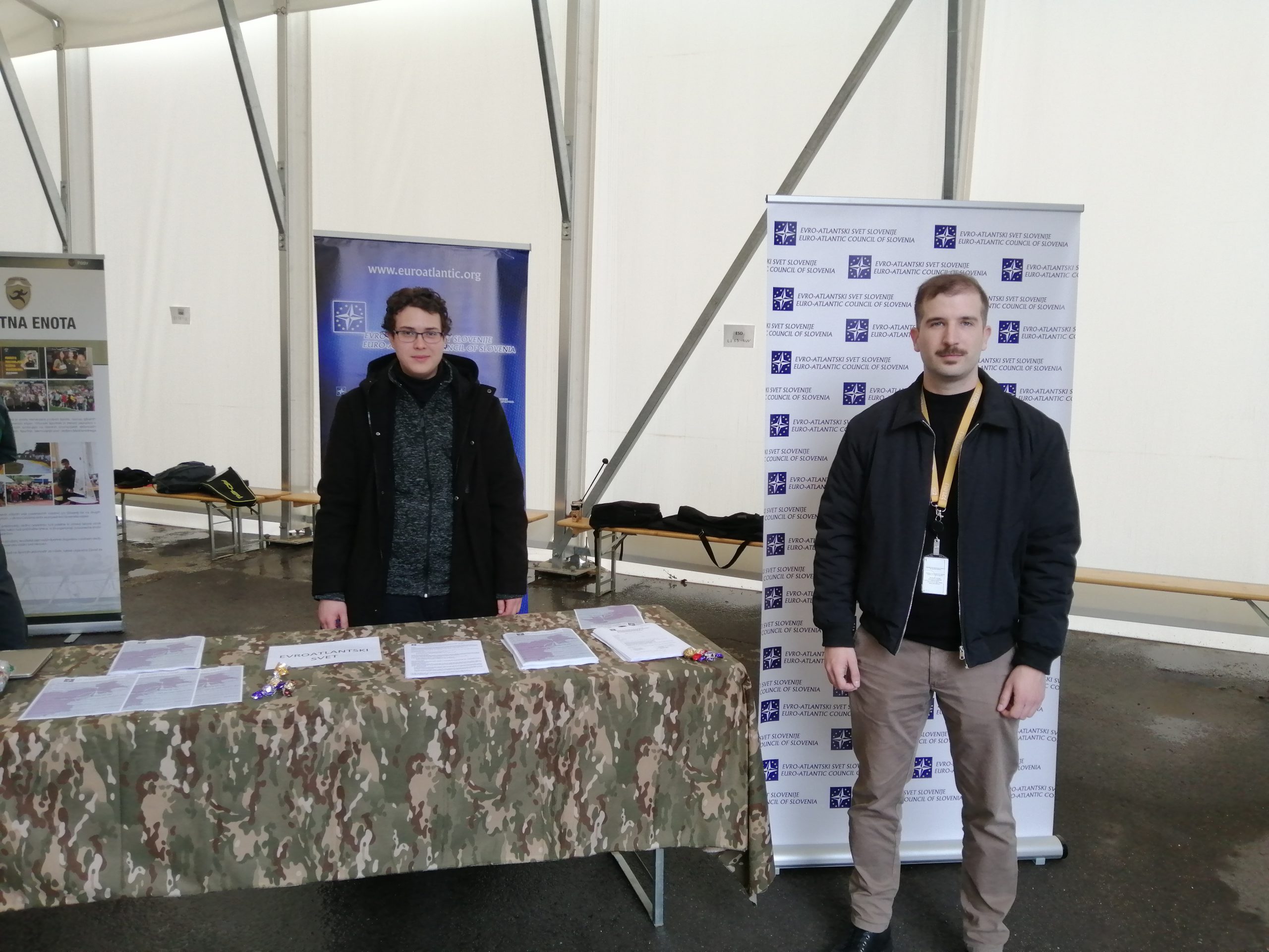 On Thursday, March 28, 2024, the members of the Youth Section of the EACS held a successful presentation at the event “In Service of the Motherland”, the purpose of which is to introduce young people to military duty and promote service in the Slovenian armed forces. The event was held at the Peter Petrič military base in Kranj. Our members presented both the importance of the NATO alliance for the security of the Republic of Slovenia and the activities of the Euro-Atlantic Council of Slovenia to the visitors. Such presentations are an example of good practice of civil-military cooperation, as they contribute to information and awareness of international aspects of Slovenian security and defense.