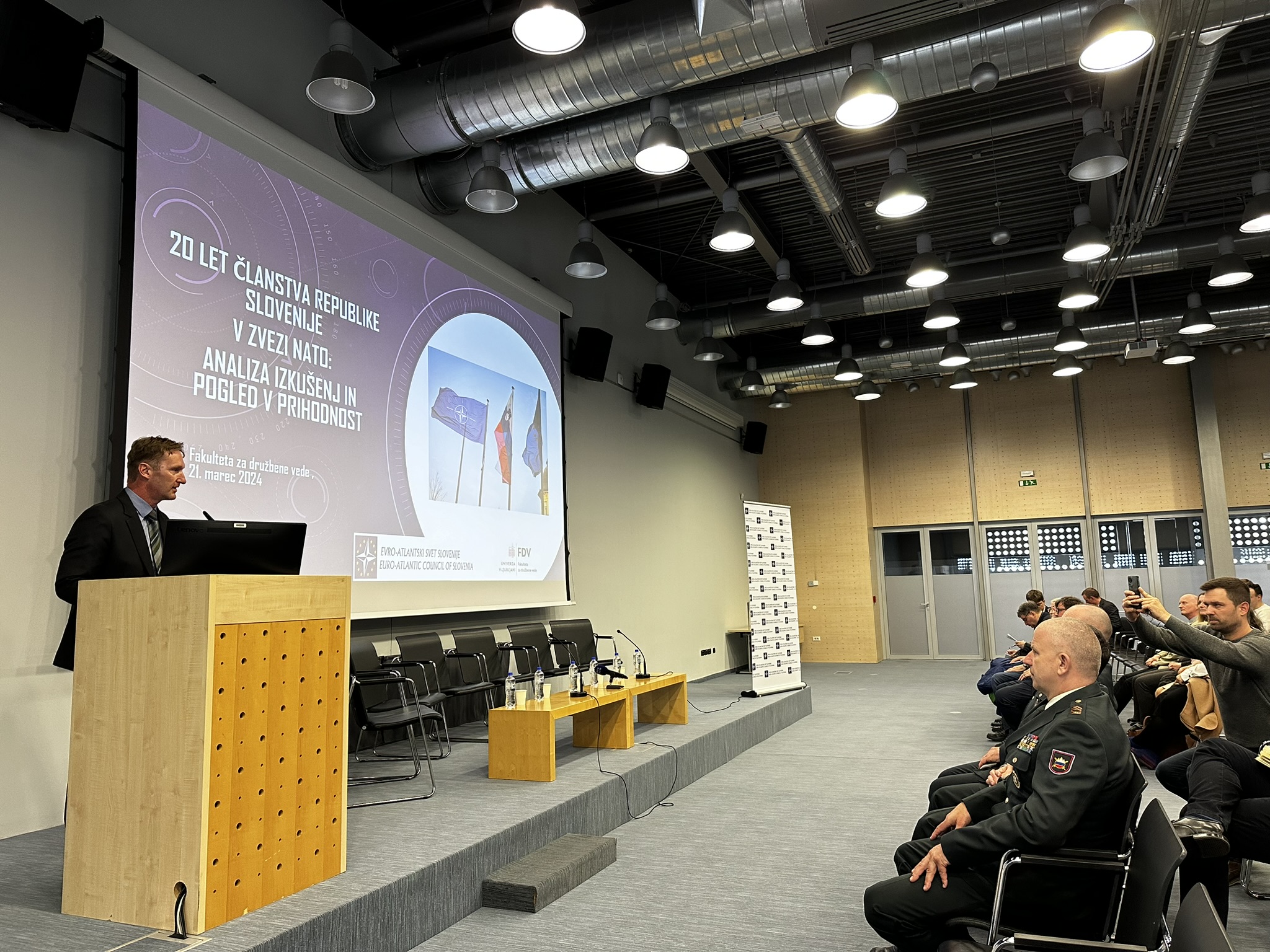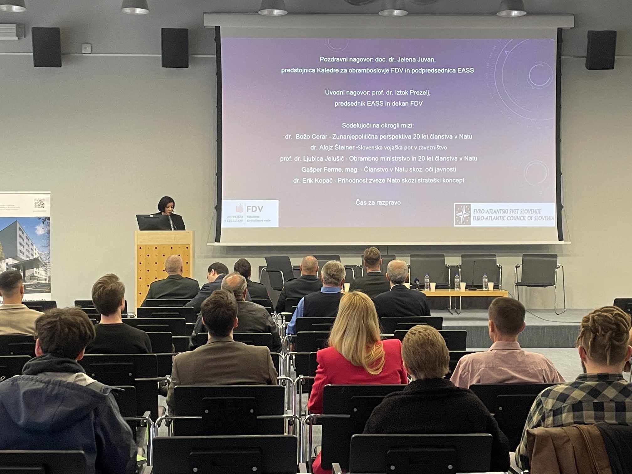 Opening remarks at the event were given by Assist. Prof. Jelena Juvan, PhD, head of the Department of Defence Studies and Vice-president of the Euro-Atlantic Council of Slovenia, and by Professor Iztok Prezelj, PhD, President of the Euro-Atlantic Council of Slovenia, and Dean of the Faculty of Social Sciences.