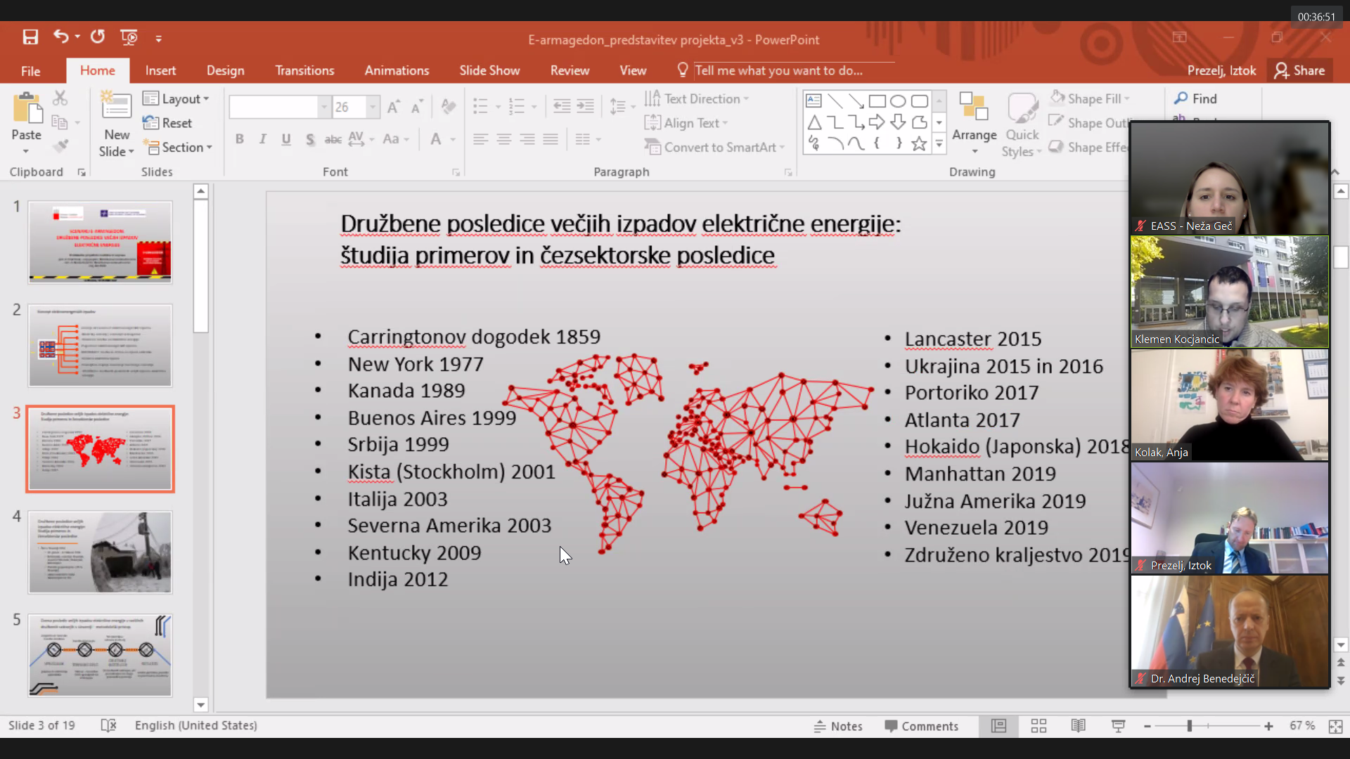 In today’s security environment, an electricity supply is no longer a given. This was also demonstrated by Dr. Iztok Prezelj, Dr. Klemen Kocjančič, Dr. Zvone Košnjek, and Mag. Anja Kolak at the presentation of the results of the project E-armageddon Scenario: Societal Consequences of Major Power Outages. The authors presented some examples of major power outages and their consequences around the world and highlighted the power outage in Slovenia caused by the 2014 ice storm.