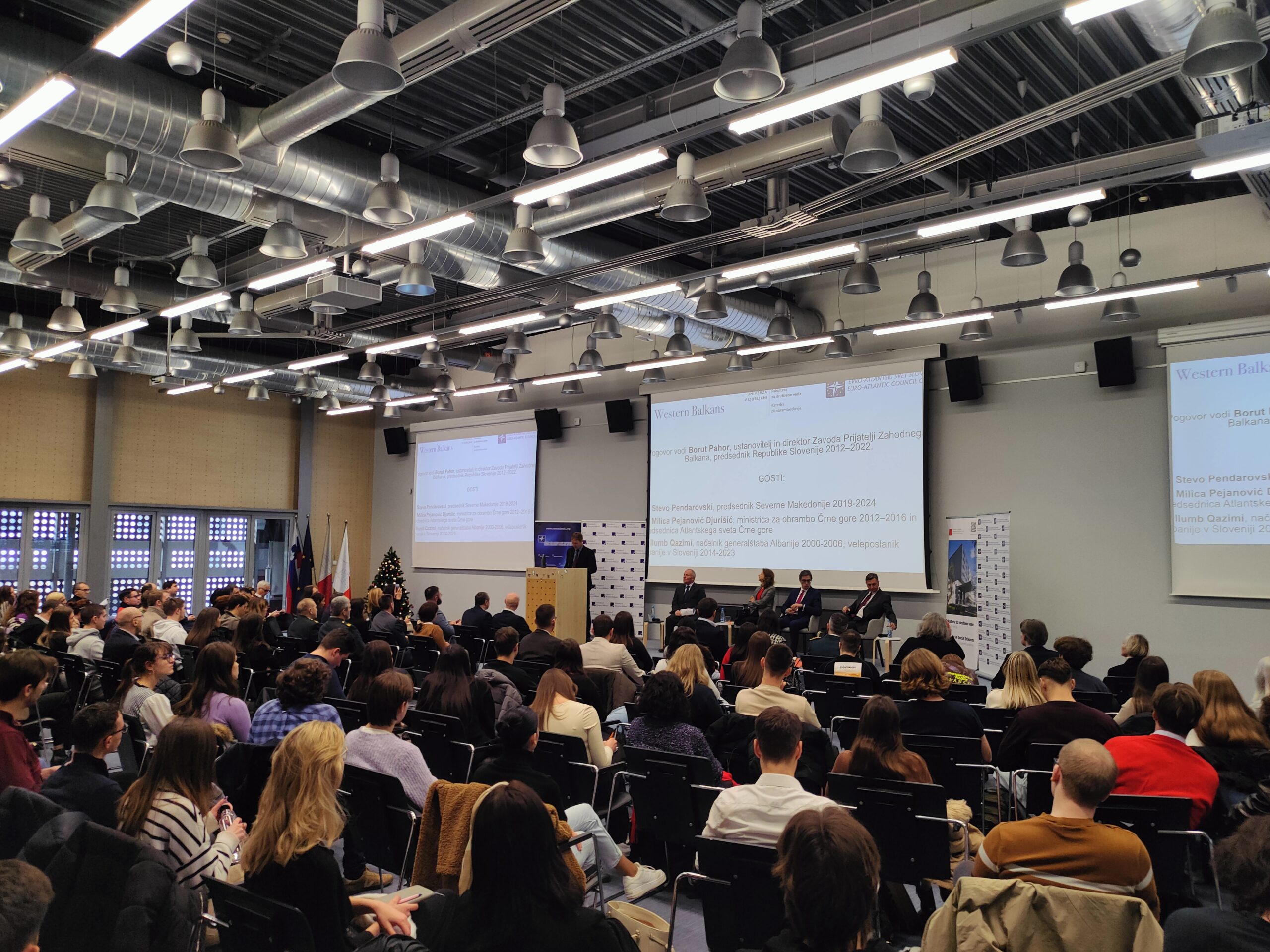 On Thursday, 12 December 2024, the Faculty of Social Sciences hosted a roundtable discussion entitled NATO and the Western Balkans that was co-organised by the Euro-Atlantic Council of Slovenia, the Chair of Defence Studies at the Faculty of Social Sciences, University of Ljubljana and the Friends of the Western Balkans Institute. The event was opened by the Dean of the Faculty of Social Sciences and President of the Euro-Atlantic Council of Slovenia, Prof. Dr. Iztok Prezelj, and moderated by Borut Pahor, Founder and Director of the Friends of the Western Balkans Institute and President of the Republic of Slovenia (2012-2022), with guests Dr. Dr.. Stevo Pendarovski, President of North Macedonia (2019-2024); Dr. Milica Pejanović Djurišić, Minister of Defence of Montenegro (2012-2016) and President of the Atlantic Council of Montenegro; Pellumb Qazimi, Chief of General Staff of Albania (2000-2006) and Ambassador of Albania to Slovenia (2014-2023).