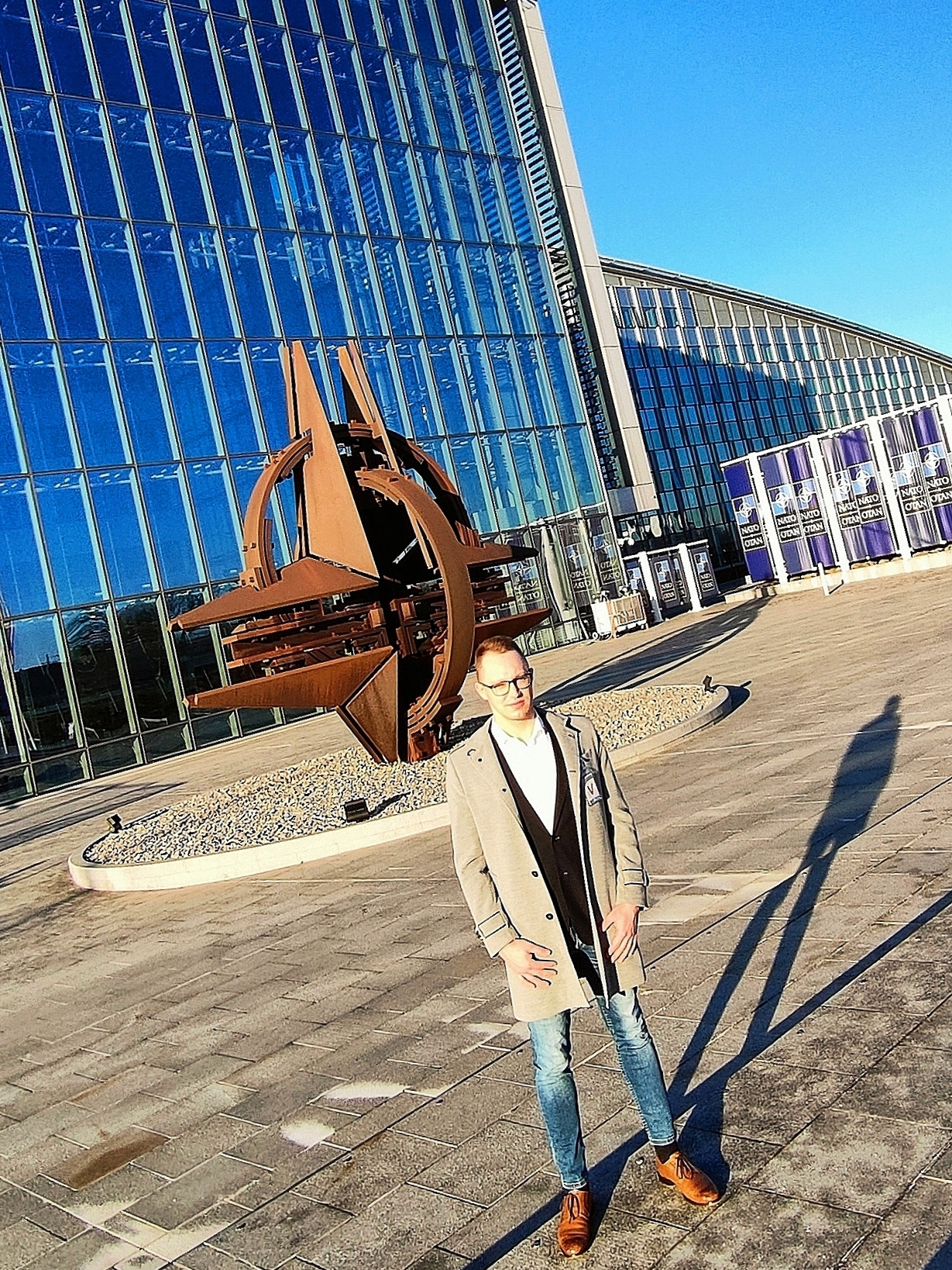 On February 8, 2023, a member of the Youth Section of the Euro-Atlantic Council of Slovenia, Matic Kosirnik, visited the NATO headquarters in Brussels, where he held several talks with officials of the Defense Policy and Planning (DPP) division and with Assoc. dr. Erik Kopač, ambassador and head of the RS mission to NATO.